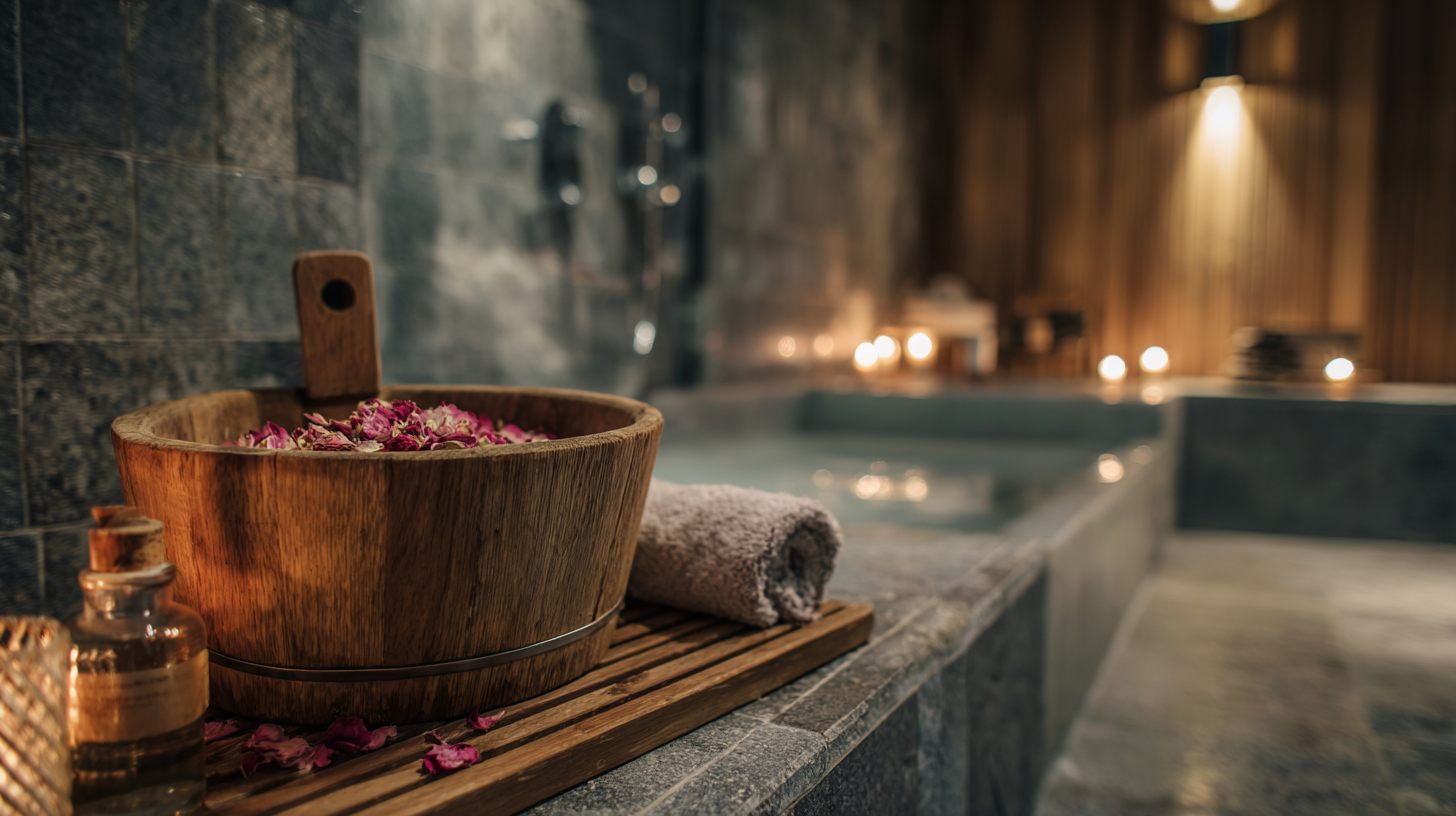 Solid wood insulates heat naturally. Your water stays hot for 30+ minutes, unlike plastic tubs that cool down instantly. -